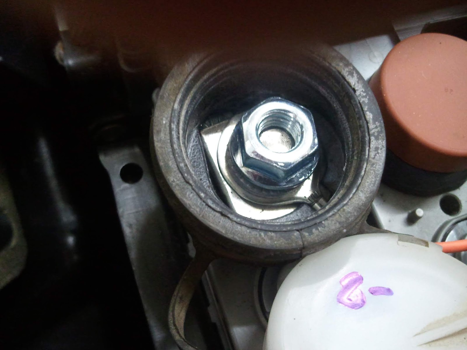 A screw on a leash ... helping to guide the pack under the car